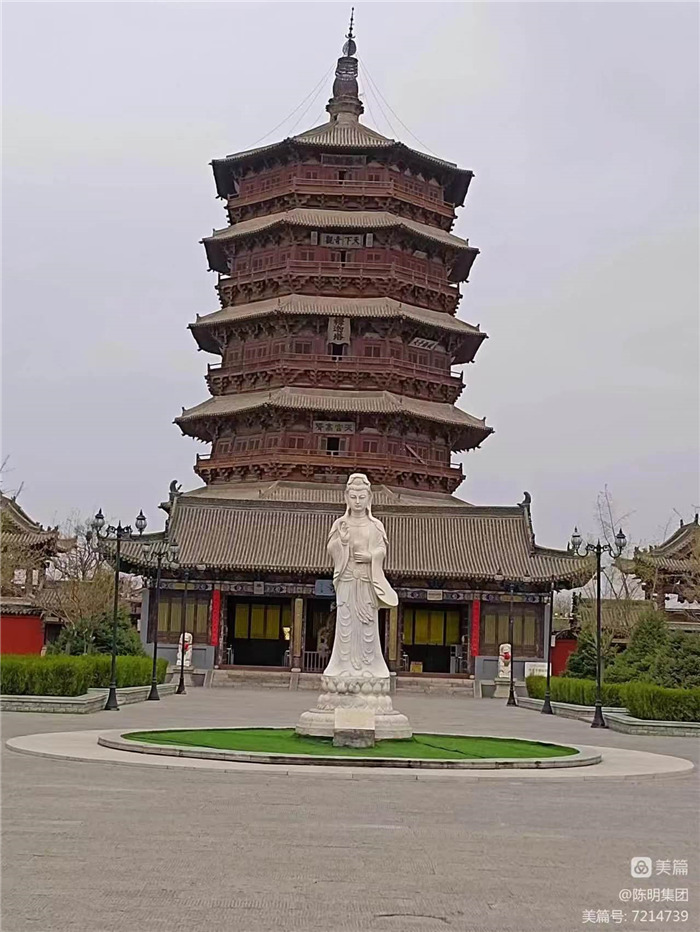 應(yīng)縣木塔外觀(guān)為五層,而實(shí)際為九層。每?jī)蓪又g都設(shè)有一個(gè)暗層。這個(gè)暗層從外看是裝飾性很強(qiáng)的斗拱平座結(jié)構(gòu),從內(nèi)看卻是堅(jiān)固剛強(qiáng)的結(jié)構(gòu)層,建筑處理極為巧妙。應(yīng)縣木塔與意大利比薩斜塔、巴黎埃菲爾鐵塔并稱(chēng)“世界三大奇塔”。